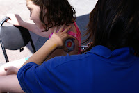 Lazy days in SoCal (Southern California) today we headed back to Universal Studios so the girls could play in the Curious George Waterpark. While waiting for the water park to open, and for the day to heat up - the day was pretty cool with all of us bundled in our sweaters, we were lucky enough to see the first show of the new Special Effects Stage at Universal - absolutely excellent ! Finally warm enough to brave the icy water, it was off to Curious George ! After a few hours of playing - mom and dad just sitting - we grabbed some food (and a tattoo each) in the City Walk. On the drive home we stopped off at Rodeo Drive for a look at where the rich and famous shop. Down to the hotel pool to cool off before retiring for the day.